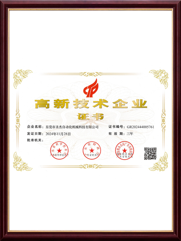 東莞市圣杰自動化機械科技有限公司成立于2010年,座落于電子名鎮(zhèn)——廣東省東 莞市石碣鎮(zhèn),注冊資金800萬,擁有多項發(fā)明專利,實用新型專利,并通過了 ISO9001質(zhì)量管理體系認證,經(jīng)過多年的發(fā)展與技術沉淀,公司已發(fā)展成為一家專 業(yè)從事非標自動化設備研發(fā)、生產(chǎn)、銷售為一體的高新技術型企業(yè),并在行業(yè)具有 一定的知名度。 圣杰擁有一支高素質(zhì)、高效率且多年從事非標自動化設備研發(fā)與生產(chǎn)的工程技術團 隊,為客戶提供工程設計、制造安裝、現(xiàn)場調(diào)試、技術培訓等全方位的自動化設備 解決方案。主要涉及行業(yè)有:電子連接器行業(yè),建筑五金行業(yè),儀表行業(yè),汽車配 件行業(yè)等。